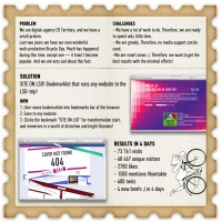 | Description | We’ve found an extraordinary way to celebrate the anniversary of discovering effects of LSD and birthday of Bicycle Day web-production from Ukraine. On 19th of April (so called “Bicycle day”, the day when Dr. Hoffman made the first LSD trip), they developed the project “Site on LSD” with bookmarklet. Such digital joke reminds users about remarkable date. After dragging the mark with picture of Dr. Hoffman into bookmarks users will see online “psychedelic effects” on every website they wish. In doing so, such virtual LSD-trip is totally safe for user’s health and mind. |