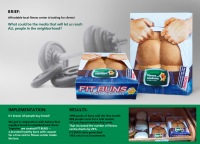 | Description | Affordable local fitness center is looking for clients! What could be the media that will let us reach ALL people in the neighborhood? It's bread. All people buy bread! We got in cooperation with bakery that supplies bread to local stores. Together we created FIT BUNS - a branded healthy buns with coupon for a free visit to fitness center inside the box |