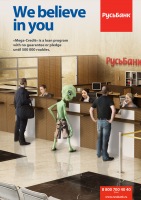| Description | Self-doubt is the main barrier for the first time borrowers. They are afraid to be refused by the bank. To get the ‘Trust loan’ by Rus bank you don’t have to worry about guarantee or pledge. Don’t worry, we believe in you – Rus bank said. Alien makes the double meaning of the headline and convince potential borrowers of the bank’s indulgence. |