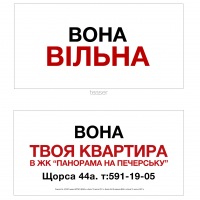 | Description | Here we use Yulia Tymoshenko”s pre-election style, as well as publicity associated with her conviction and staying in prison. It is a play on words on the possibility of releasing the political leader of the first order and the possibility of buying the apartment in the complex, which has already been started up. |