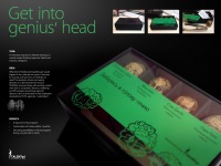 | Description | What kind of intellectual breakthrough would happen if we could get into genius’ head just for one day and learn how to think like he does? The similarity of brain and walnut allowed us to demonstrate the result of seminars of TALENTari training center. Boxes with exciting content were sent to companies’ directors, marketing and PR managers, advertising agencies’ directors, who are interested in their employees development (3 BTL agencies, 7 advertisers). |