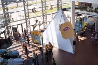 | Описание | Огромный "чайный пакетик" был спроектирован и сооружен для того, чтобы посетителям торговых центров стран Балтии создать визуальнию аналогию с чайной пирамидкой Lipton. Внутри пирамиды размещенный батут обеспечивал интерактивность, позволяя посетителям почувствовать себя легкими "лепестками" чая с невероятно легким вкусом Lipton Green & White. |