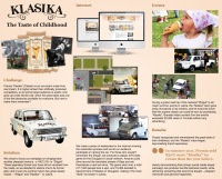 | Описание | 850% sales increase, awareness, most popular ice-cream on Draugiem.lv during summer of 2011 as well as associations with product and classical values. Link between product and audience –“Zigulis”. Communication and engagement; Video with restauration of the vehicle, game in classical GTA style where one can ride the streets of Riga; lottery with “Zigulis” as a main prize; envolvment in the biggest summer events, where people could feel and get to know “Zigulis”. And of course, enjoy "Klasika" |