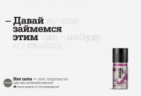 | Описание | Парни любят слышать от девушек приятные слова и недвусмысленные предложения. Но что если девушки в это время видят пот парней и просто не хотят их обидеть, льстят им, а предложения могут иметь и противоположный смысл? Мы показали, что антиперспиранты AXE DRY предотвращают не только появление мокрых пятен пота на одежде, но и неприятного подтекста, который может быть скрыт за лестными словами девушек. Мы разработали серию постеров, в которых наглядно продемонстрировали подтекст в, на первый взгляд, безобидных и привлекательных репликах девушек. Хлопцям приємно чути від дівчат приємні слова та недвозначні пропозиції. Проте якщо дівчина в цей момент бачить піт хлопця і просто не хоче його образити, вона лестить йому, проте пропозиції можуть мати протилежне значення? Ми довели, що антиперспіранти AXE DRY запобігають не лише виникненню мокрих плям поту на одязі, але і неприємного підтексту, який може бути прихований за приємними словами дівчат. Ми розробили серію постерів, у яких наглядно продемонстрували підтекст у безневинних, на перший погляд, репліках дівчат. |