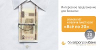 | Описание | Cпециальное предложение от банка юридическим лицам – услуга за 20 рублей. |