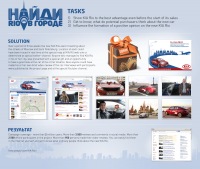 | Опис | В конце прошлого года стартовал проект «Найди Rio в городе» от KIA Motors. DEFA Interaktiv превратило обычный тест-драйв автомобиля KIA Rio в интерактивную кампанию. Проект продолжал предыдущую московскую акцию KIA "Venga в большом городе», которая успела стать популярной и доказала свою эффективность, в том числе за счет получения большого объема пользовательского видео-контента. Подробнее о результатах проведения акции в нашем видео-кейсе. |
