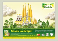 | Опис | Задача. Провести национальную промо кампанию известного бренда консервированных и замороженных овощей. Повысить знание марки и продажи. Решение. Мы предложили потребителю готовить кулинарные шедевры вместе с Bonduelle и получить возможность познакомиться с шедеврами мировой архитектуры, выиграв кулинарный тур на двоих. В акции «Только шедевры» можно было выиграть также крупную и мелкую бытовую технику, кухонные принадлежности. В концепции «Только шедевры» мы своими руками воссоздали знаменитые творения зодчих прошлого. Из горошка, кукурузы, брокколи, моркови, свеклы, фасоли, чечевицы и прочей аппетитной мозаики мы выложили Эйфелеву башню, церковь Саграда Фамилиа в Барселоне авторства знаменитого Гауди и характерные дома центральноевропейской архитектуры XVII-XVIII веков, которые встречаются в пасторальных городках курортной Австрии. Овощные «шедевры» украсили вагоны метрополитенов Киева, Харькова и Днепропетровска. На бакалейных полках страны сотворить свой шедевр и выиграть призывали: шелф-токеры, ай-стопперы, этикетки банок. |