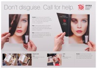 | Опис | Проблема: Каждая третья российская женщина в своей жизни хотя бы раз подвергалась домашнему насилию. При этом 90 % пострадавших не обращаются за помощью, продолжая терпеть унижение. Чтобы скрыть следы побоев женщины используют декоративную косметику, солнцезащитные очки и т. д. Задача: Привлечь внимание к проблеме домашнего насилия и сообщить об открытии «горячей линии», специалисты которой оказывают пострадавшим бесплатную психологическую и юридическую помощь. Идея: В своей идее мы используем тот же принцип, что и жертвы насилия: мы маскируем основное сообщение под рекламу категории «fashion & beauty». Результат: С момента запуска «горячей линии» центр «АННА» получил более 10 000 звонков от женщин со всей России и стран бывшего Советского Союза. Большинство позвонивших были заинтересованы в получении информации о деятельности центра, и более 3 000 обратились за помощью, заявив, что уже страдают от проблемы домашнего насилия. |
