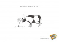 | Опис | Когда имеешь дело с таким нежным, мягким сыром, догадываешься, что тут не обошлось без коров особой породы. Коров, которые не станут спорить и ругаться, а помогут или пойдут на уступки. Добрых коров, покладистых. Коров с мягким характером. |
