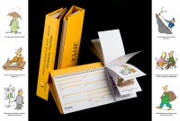 | Опис | Настольный еженедельный календарь-планировщик (52 стр.), состоящий из двух независимых частей, объединенных пружиной. Правая часть содержит 52 "позитивных прогноза":- «Удачный день для общения с начальством», «Удачный день для деловых переговоров» и пр. В зависимости от планируемых дел, выставляется нужный прогноз и таким образом программируется удача в нужном деле. Прогноз может выставляться на день, неделю, месяц и т.д. |